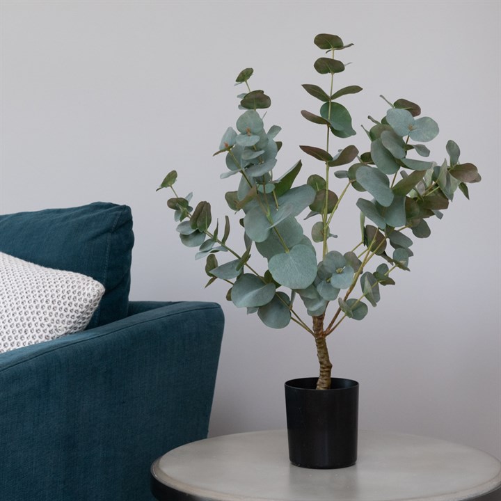 A planted Eucalyptus is a perfect choice for immediate styling. Need to brighten up the home office? Add a small faux eucalyptus in a pot . Need to make more of a statement in the bathroom? Try a large artificial eucalyptus in a pot . They work with almost any colour scheme, require almost no maintenance, and are the easiest way to add warmth and calm to a room without additional effort.