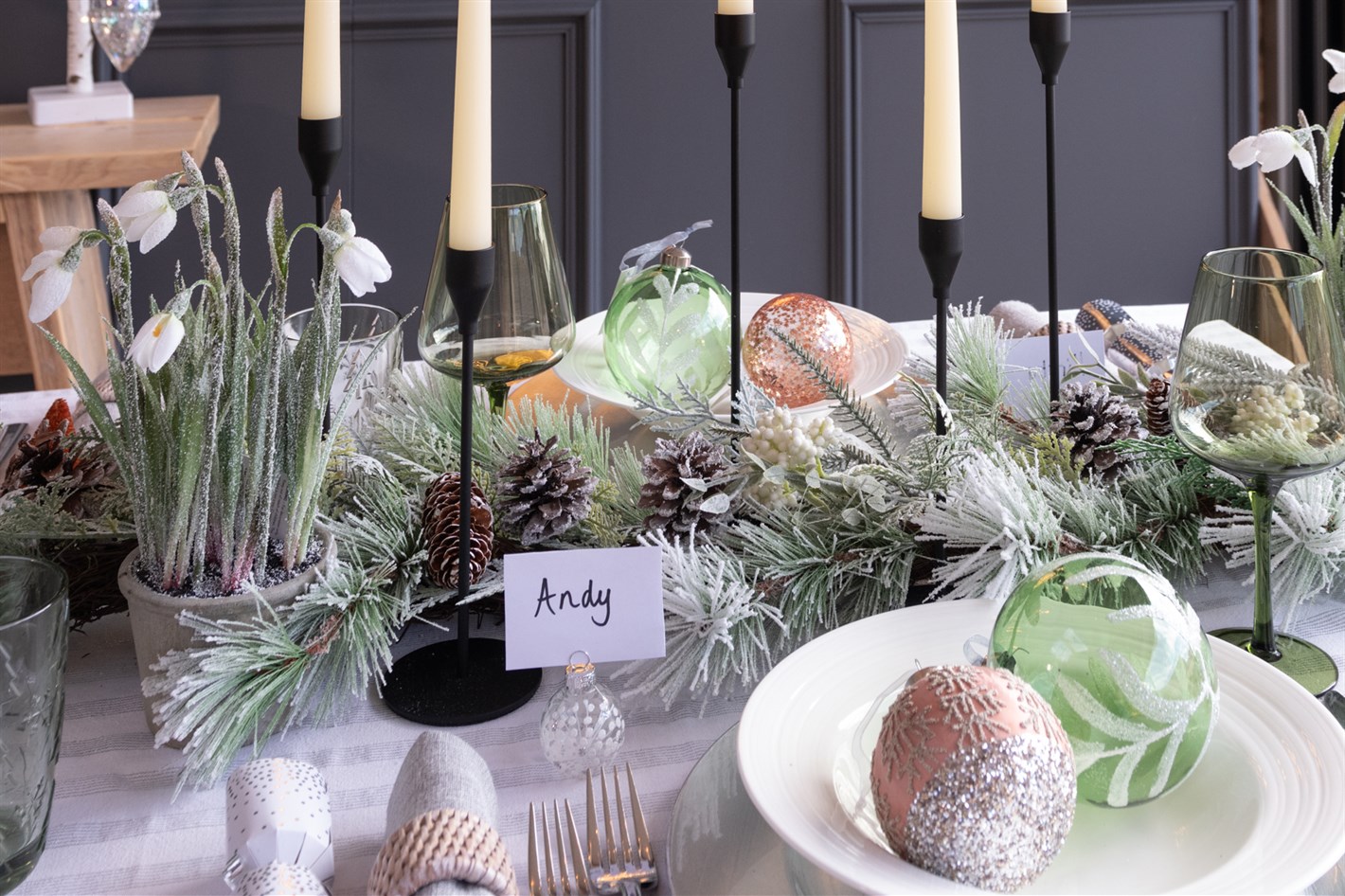 Choose plates, bowls and glassware that complement your theme. For a cohesive look, stick to a consistent colour palette. You can experiment by adding patterned crockery, or opt for classic crockery with coloured linens. For added fun, consider including a cracker or a small gift for each guest. This could be a cracker filled with truffles, a jar of homemade chutney, or a bauble for your guests to keep. With the latter, it’s fun to pick different decorations for each guest and let them guess which one is theirs – novelty baubles are especially good for this.