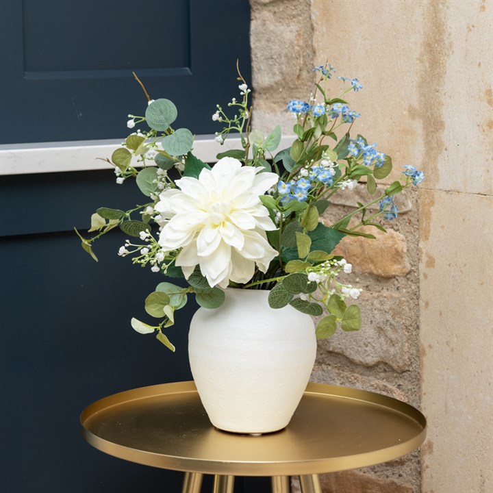 Another is the lovely Dahlia and Forget-me-not in a ceramic vase, which again combines eucalyptus, but this time with the soft wildflower Forget me nots, and a bountiful white Dahlia. Arranged by hand, and set in resin, it will never fall out of place.
