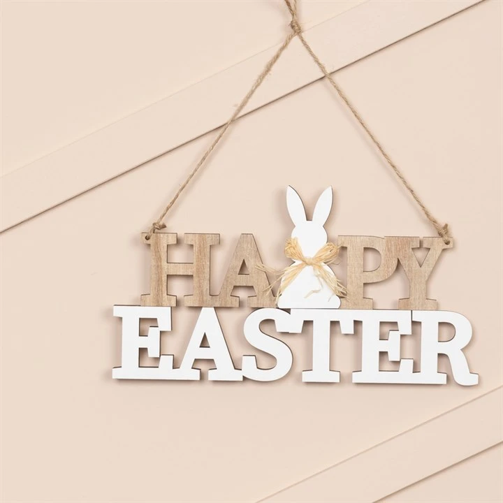 The mix of natural wood and white tones creates a balanced, rustic look, while the hanging design makes it easy to style as an Easter wall decoration, door sign or part of spring decoration. Ideal for adding interest to doors, walls or shelves, it fits effortlessly into both modern and classic interiors.