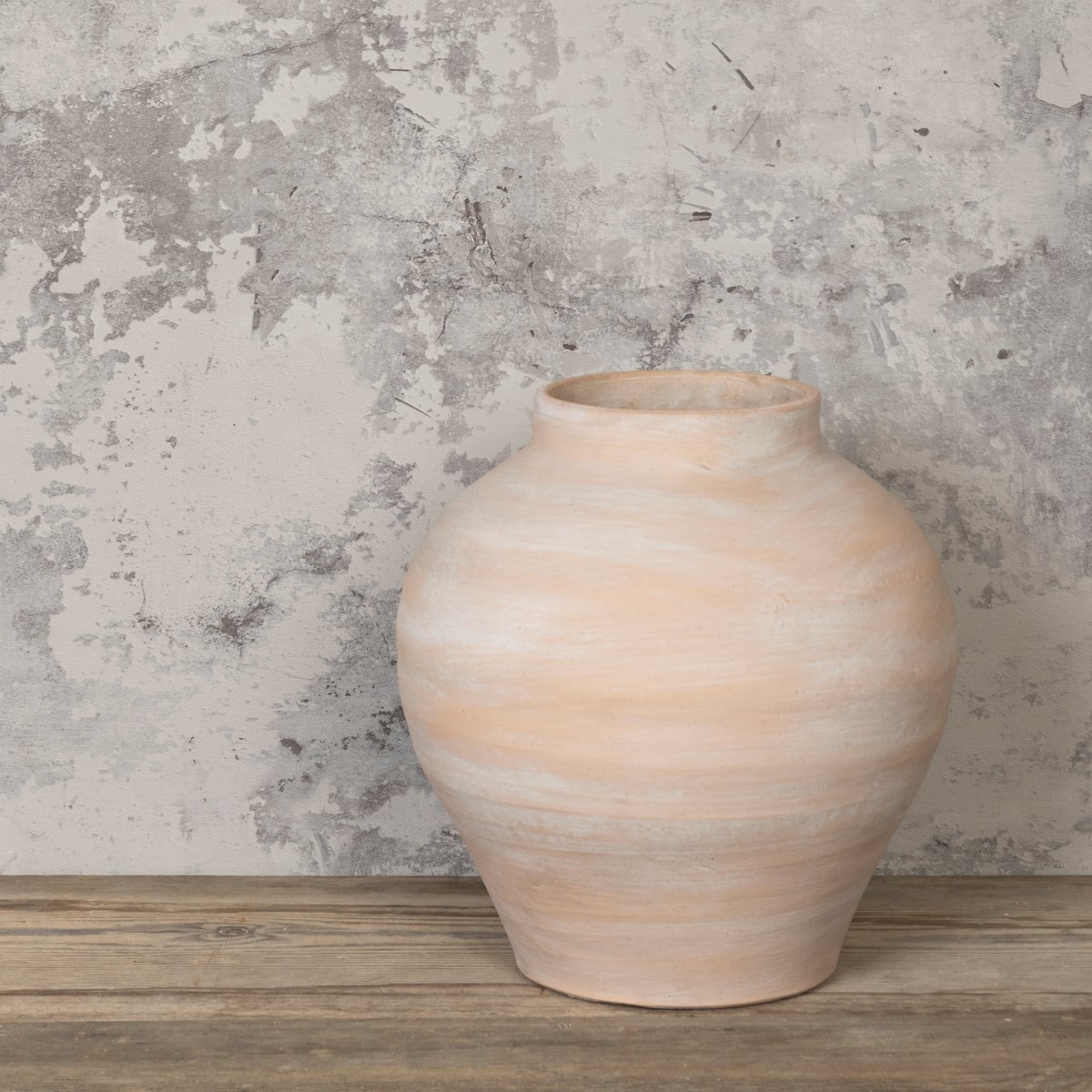 Warm, earthy and quietly expressive, the Fae Soft Terracotta Effect Textured Vase 25cm brings a natural softness to interior styling. Its gently rounded silhouette is finished with a subtle terracotta-inspired wash, giving the appearance of aged clay while maintaining a refined, contemporary feel.