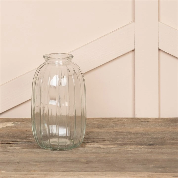 The compact 12cm height makes this glass vase ideal for smaller arrangements, single stems or delicate faux flowers, perfect for shelves, side tables or window sills. The vertical ribbing catches the light beautifully, giving the vase added depth without overwhelming your styling.